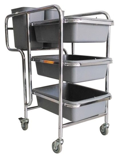 Bahan Stainless Steel 201Ketebalan 0.9 mmRuang 5 PVC untuk menaruhpiring kotorStruktur DirakitJenis Roda 4 kastor putar TPRdiameter 75 mm, 2 dengan remUkuran Produk 820x440x930 mm